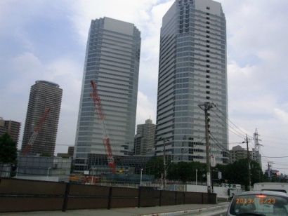 新川崎駅側から信号待ちの車の中から撮りました。